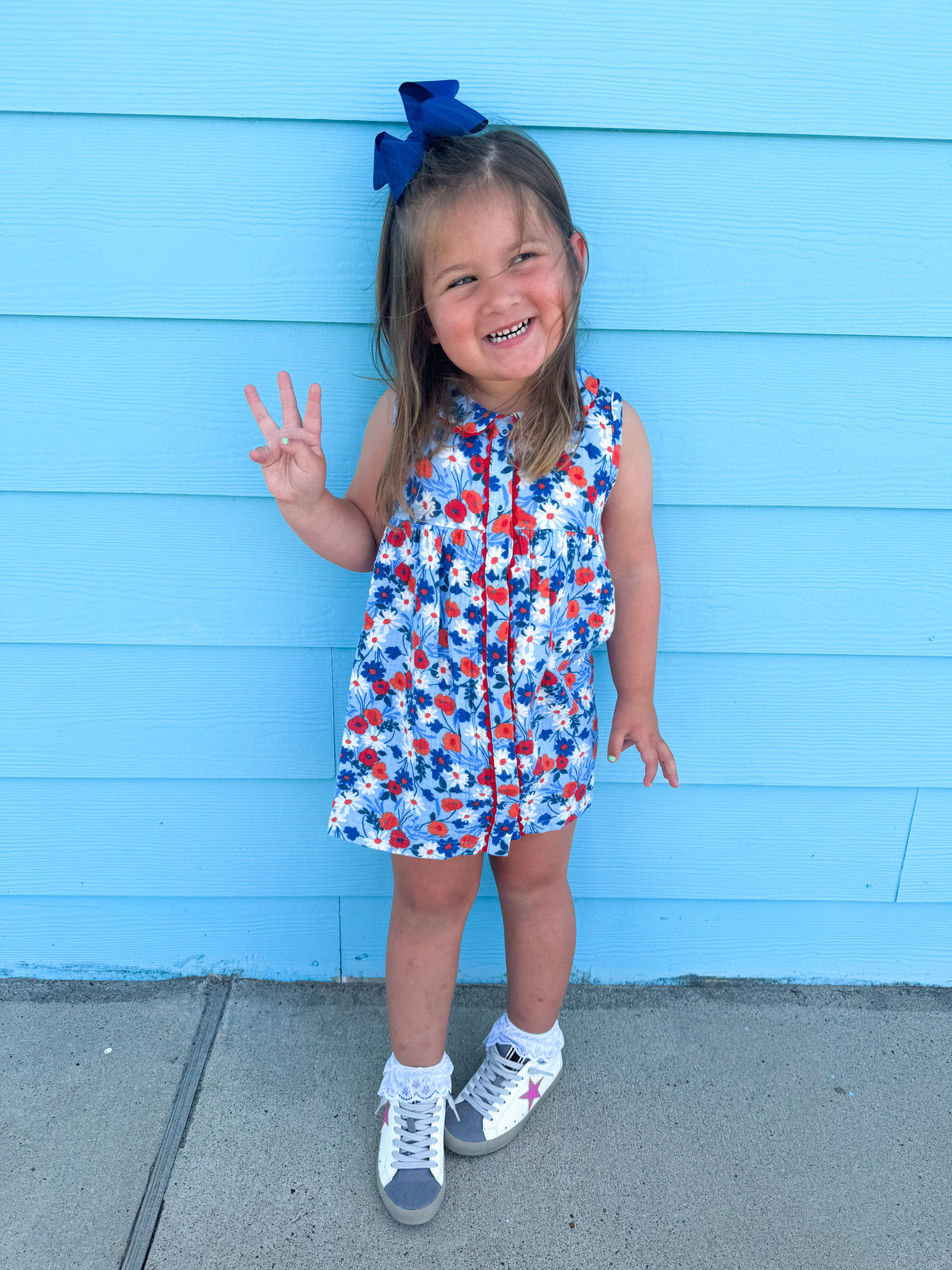 Sweet Wink- Ditsy Floral Bow Patch Short Sleeve Romper - Natural