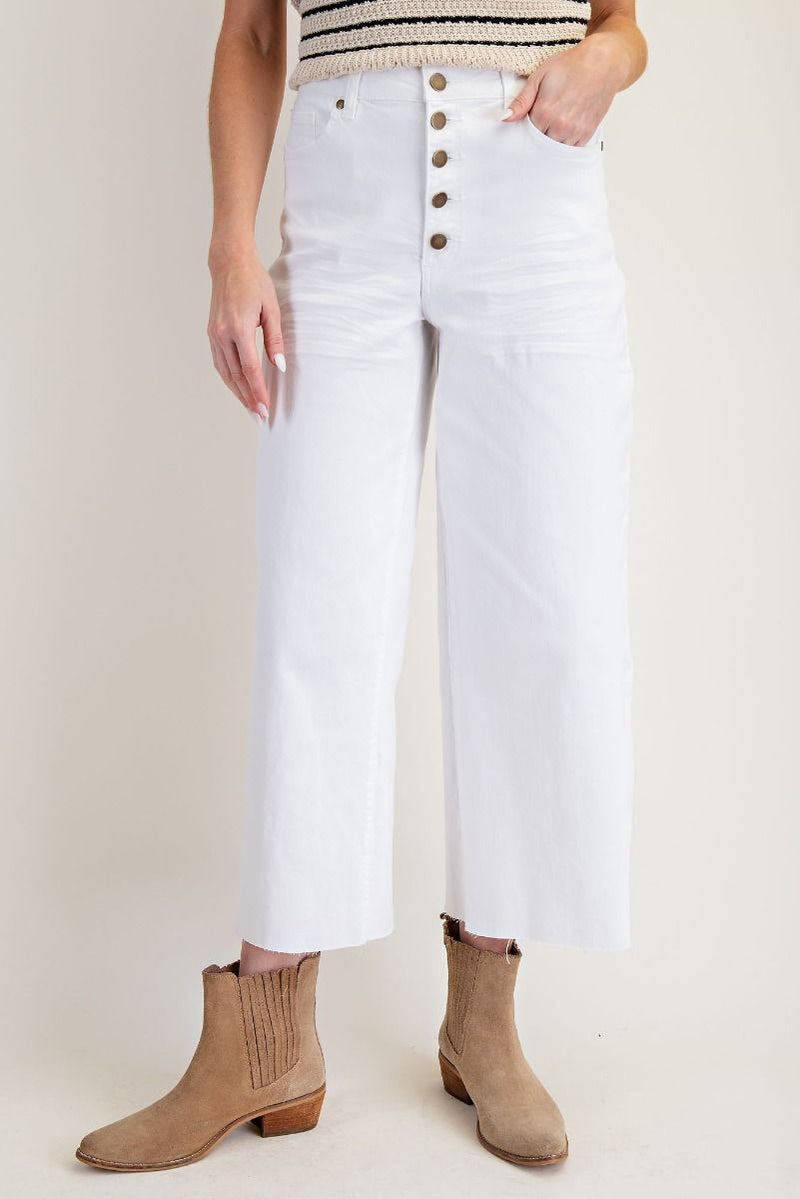 White Button Front Twill Pants