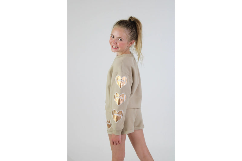 Football Heart Sleeve Applique Sweatshirt - Tween Girls