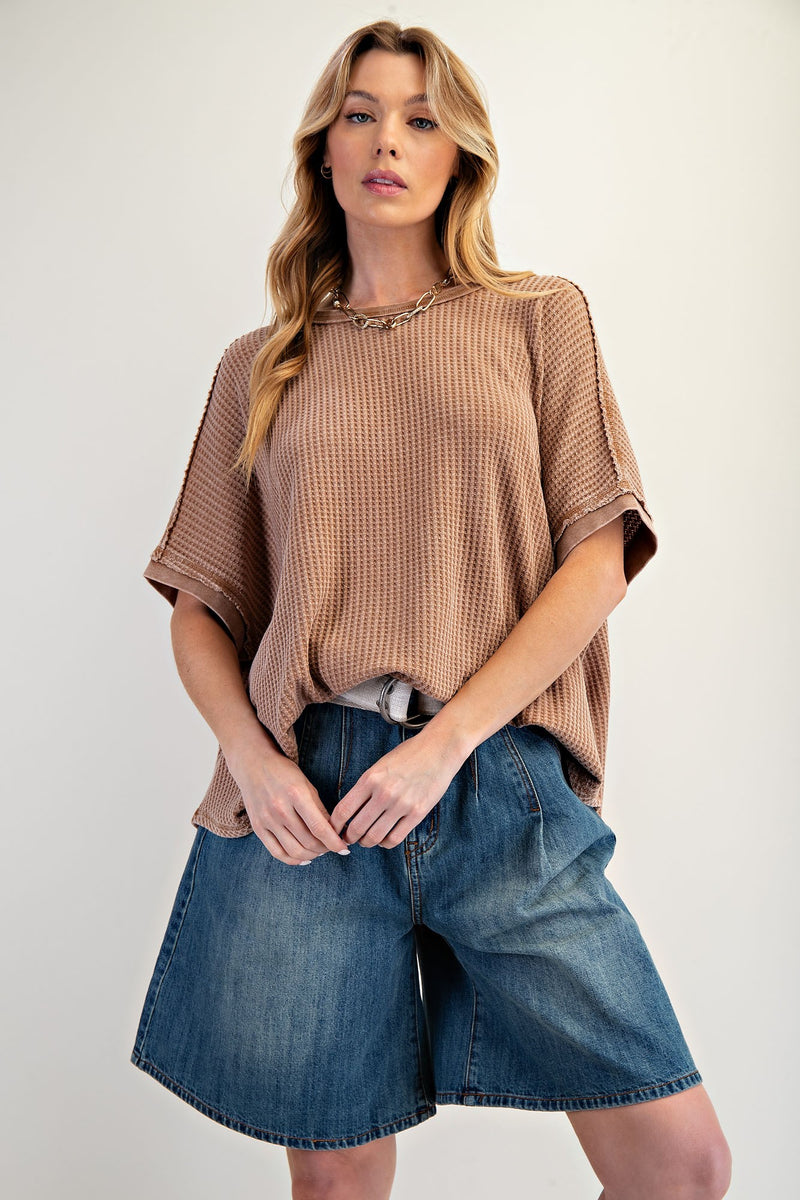 Coffee Mineral Washed Thermal Knit Oversized Top