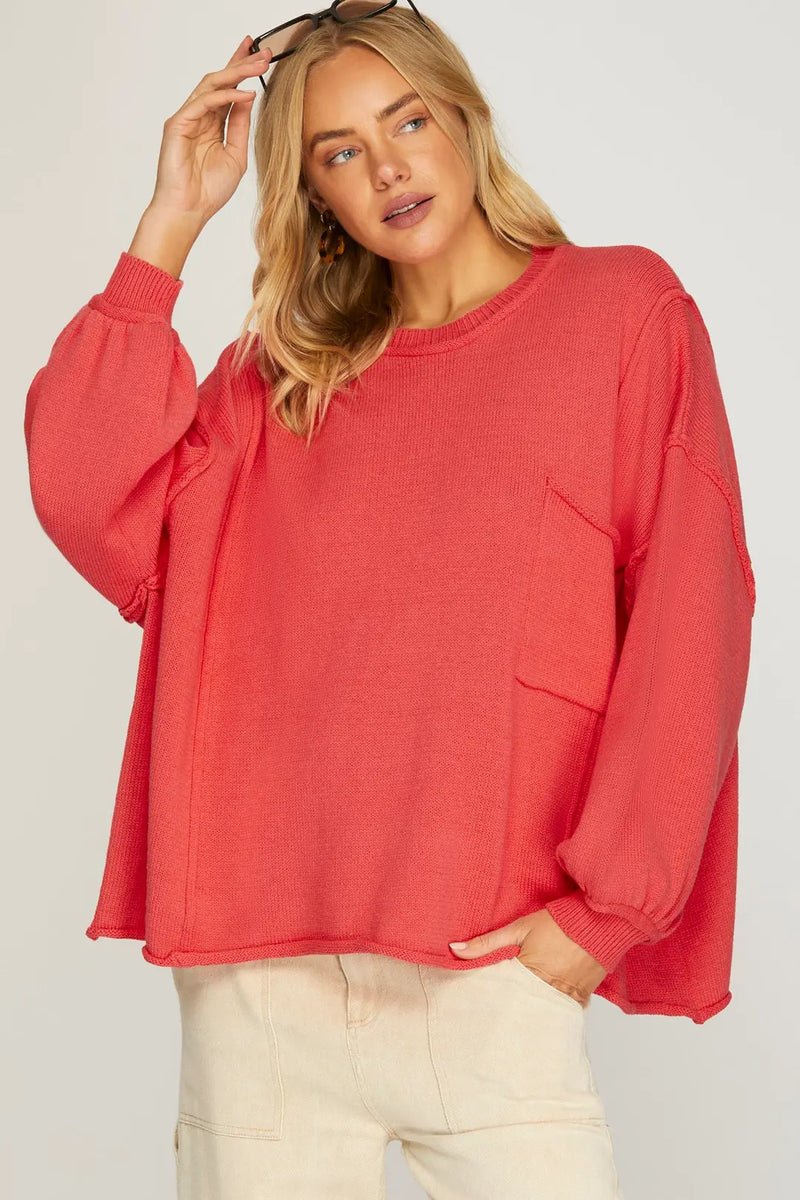 Marlin Acid Washed Double Ribbed Exposed-seam Pullover