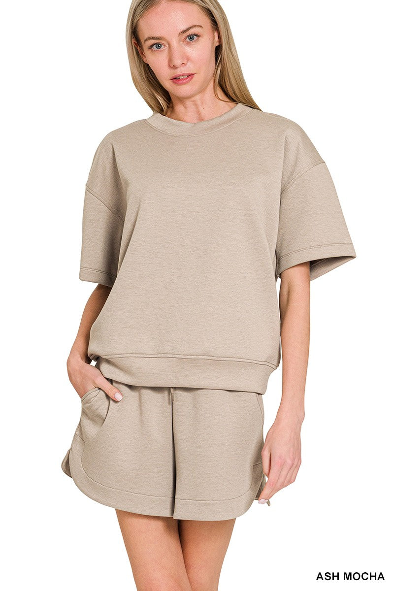 Ash Mocha Scuba Round Neck Top & Dolphin Shorts Set