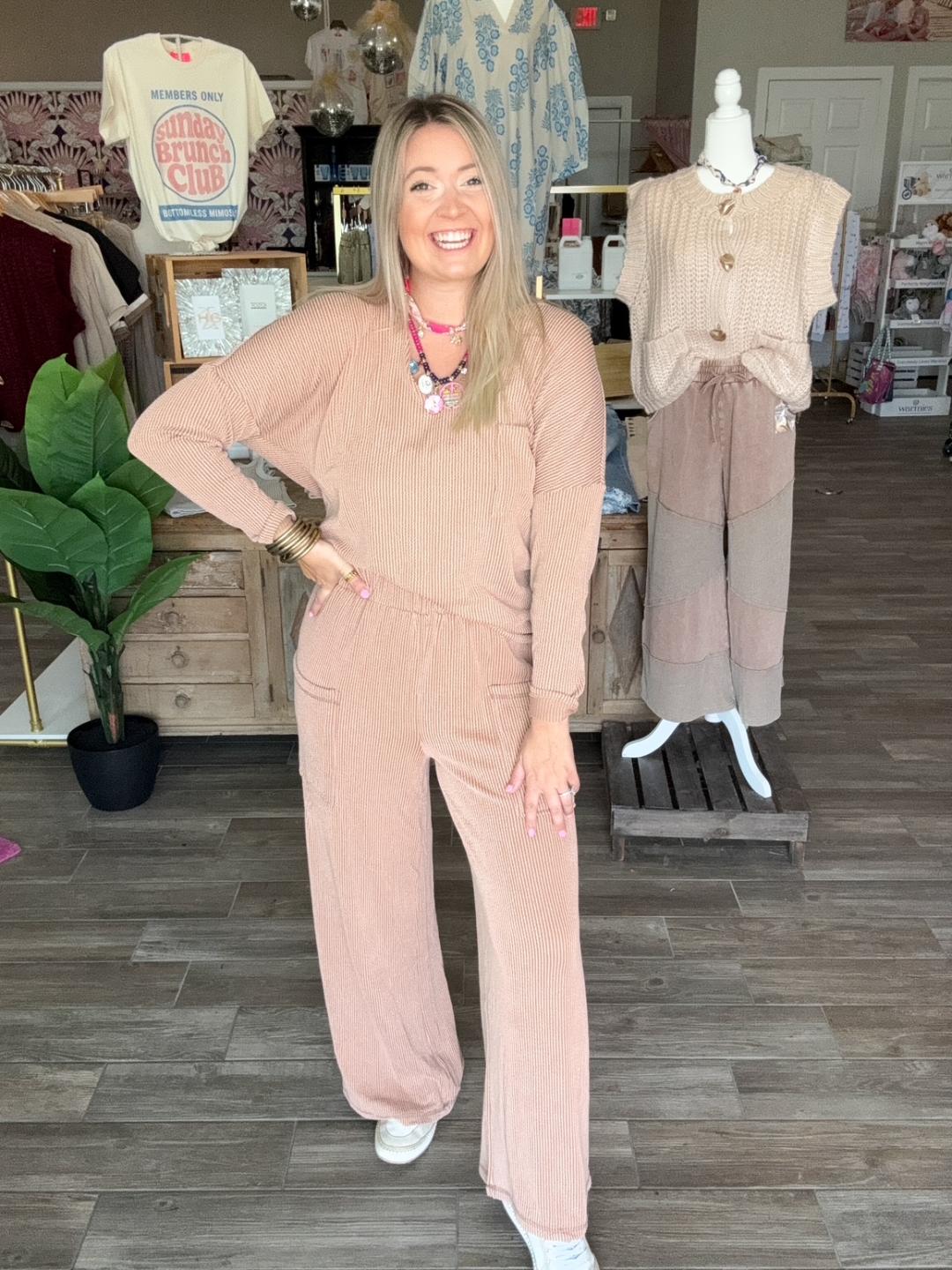 WAVY TEXTURED TWO TONE RIB NOTCH NECK PATCH POCKET TOP