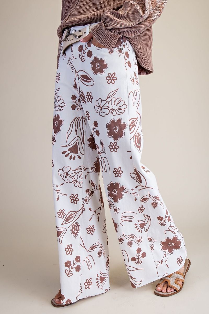 Description: PRINTED WASHED TWILL WIDE PANTS